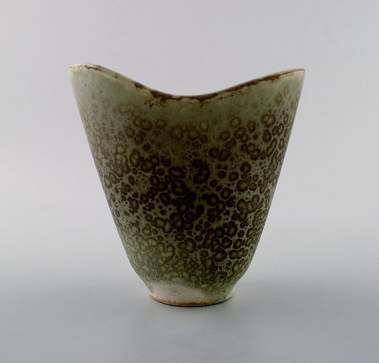 Carl Harry Stålhane, Rörstrand stentøjsvase. Smuk æggeskalsglasur. I perfekt stand, 2. sortering. Måler 10 x 10,5 cm.