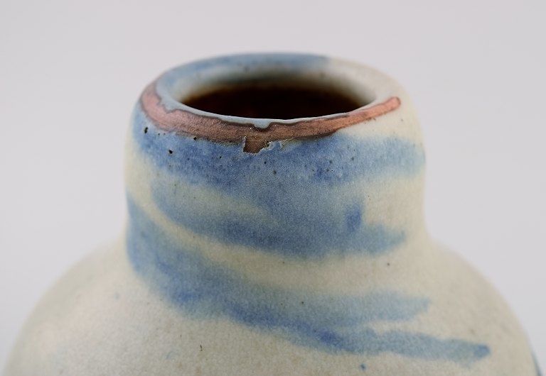 Unika Knud Kyhn for B&G, Bing & Grøndahl keramikvase dekoreret med odder fangende fisk.
