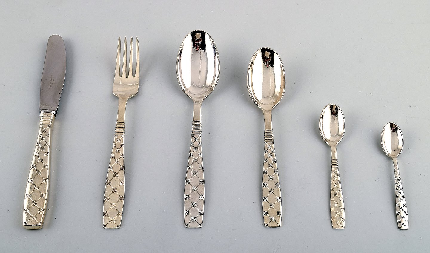 Jens Quistgaard 1919-2008. Star. Silver plated cutlery. Danish design mid 20 c. Consisting of 27 pieces for 4 persons. The knife is measuring 20,5 cm. In very good condition. Marked.