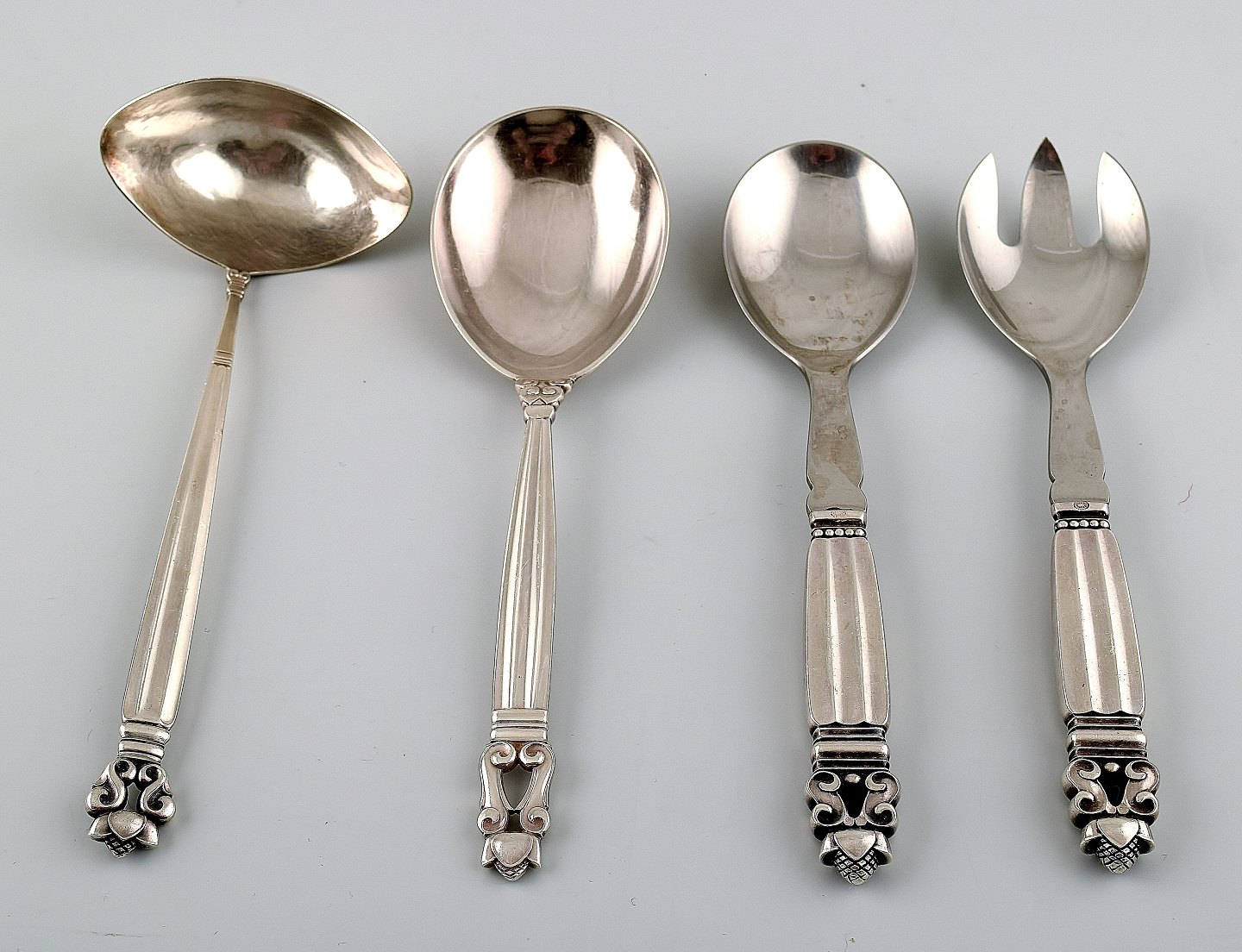 Early 1920 s Georg Jensen Sterling Silver 'Acorm' Dinner cutlery.