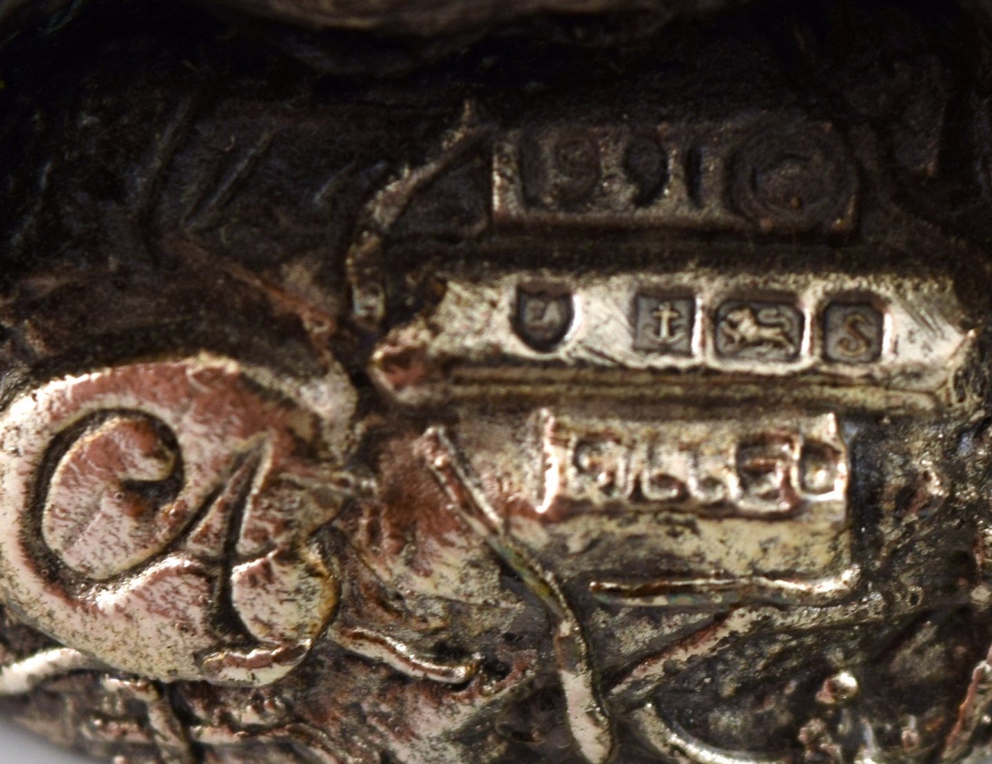 Rat in silver, satiated rat takes rest in apple core. Unknown silversmith. Indistinct master stamp. Measures: 5 cm. x 5 cm. In perfect condition.