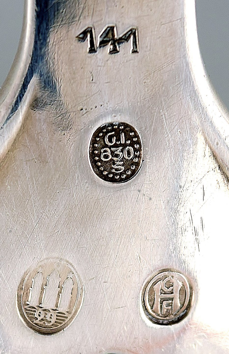 Georg Jensen Ornamental sølv nr. 141, stor serveringsske, bærske. Længde 20,5 cm. Stemplet. Georg Jensen Sølvsmedie 1915 - 1930. Flot stand.