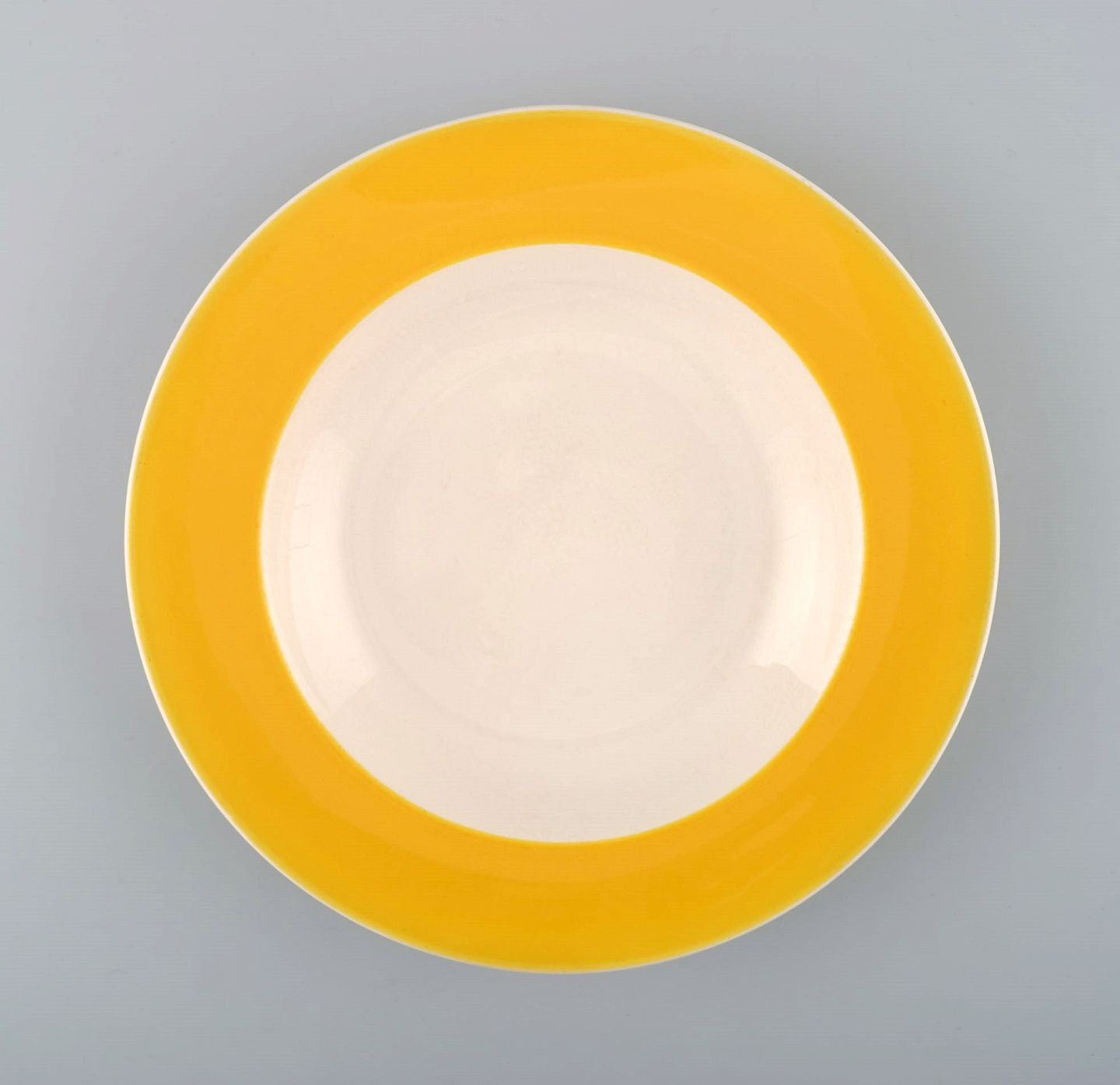 8 dybe/suppe tallerkener, Susanne Gul Confetti Royal Copenhagen/ Aluminia fajance. Måler: 23,5 x 4 cm. I flot stand. 1. sortering.