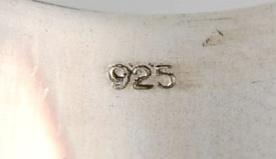 Samling smykker af sterlingsølv, de fleste med monteringer af ibenholt, bestående af 5 ringe og et vedhæng.