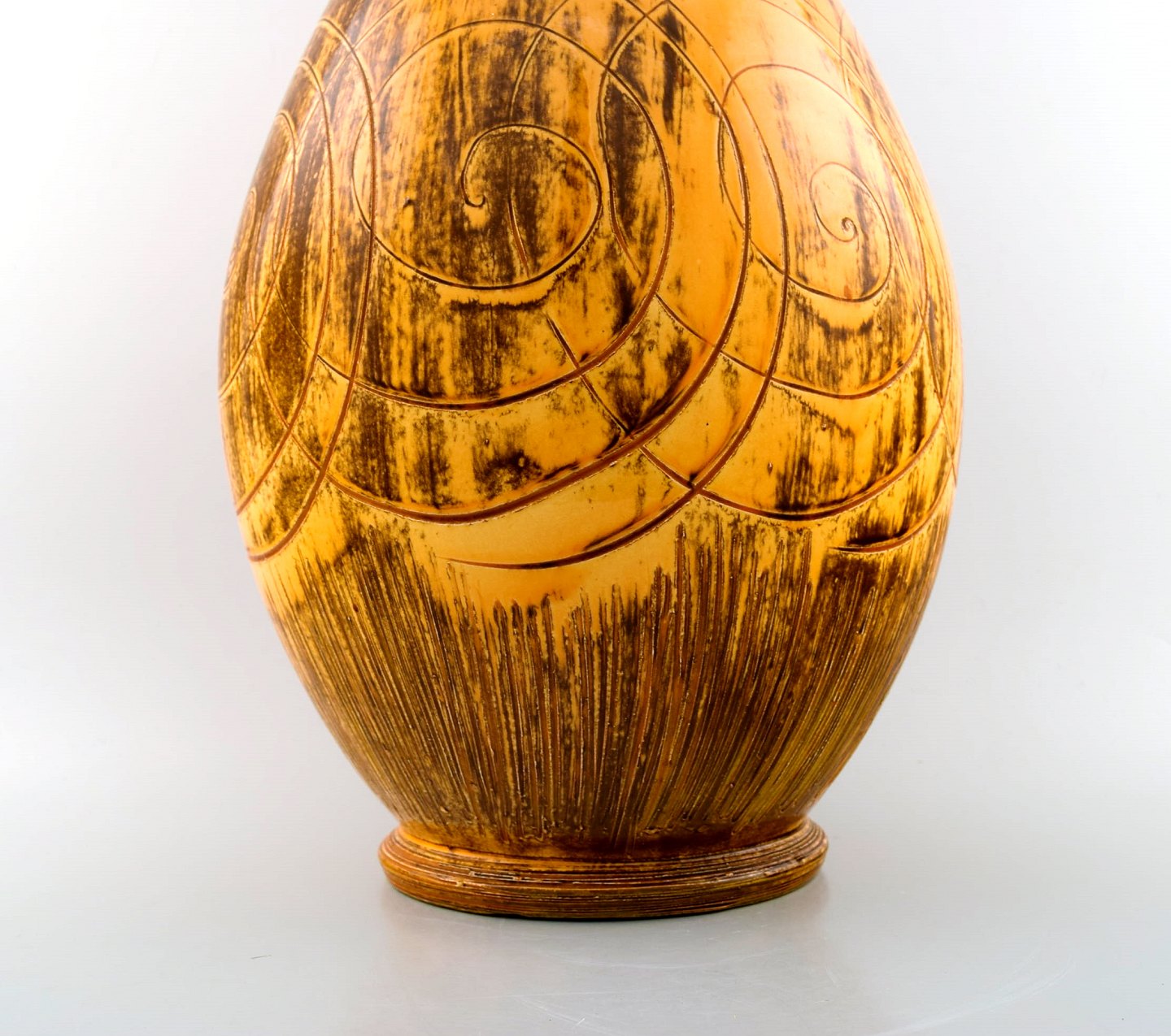 Stor Kähler, HAK, Svend Hammershøi, glaseret gulvvase i stentøj. I perfekt stand. Flot urangul glasur. Stemplet. Måler 53 x 26 cm.