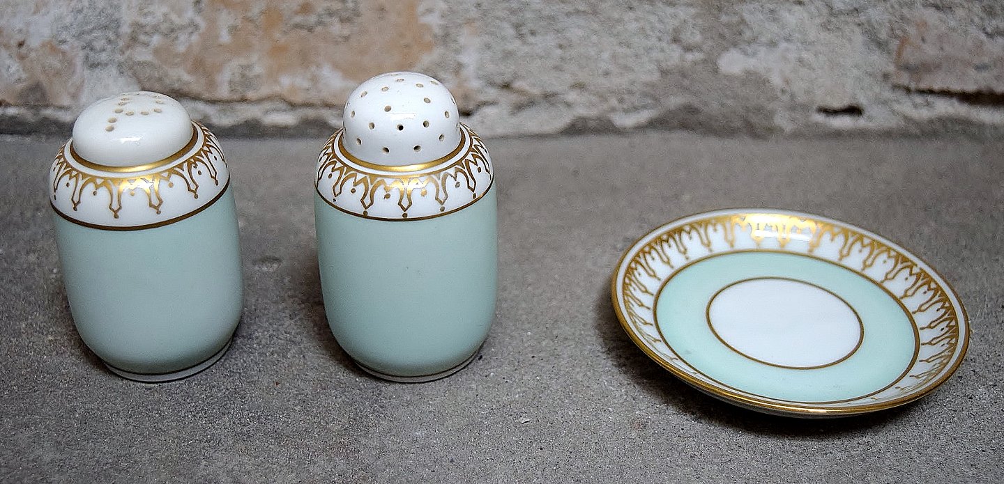 Bestående af : 6 middagstallerkener + 6 suppe/desserttallerkener, stort serveringsfad, sovsekande, stor kande, salt og pebersæt, 2 mindre fade.