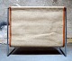 Verner Panton : Magazine holder with chromed frame of steel. Suspended with canvas with leather edges. Height 39 cm. In perfect condition.
