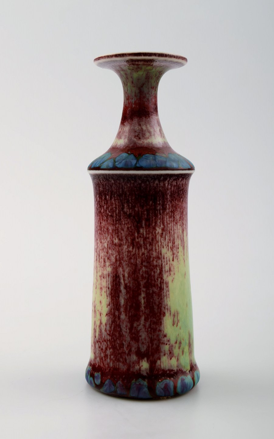 Stig Lindberg (1916-1982), Gustavsberg Studio hand, ceramic miniature vase. Beautiful aniara glaze. Measures 10 x 3 cm. In perfect condition.