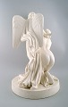 Klassisk skulptur i biscuit på sokkel, Gustavsberg, sent 1800-tallet.