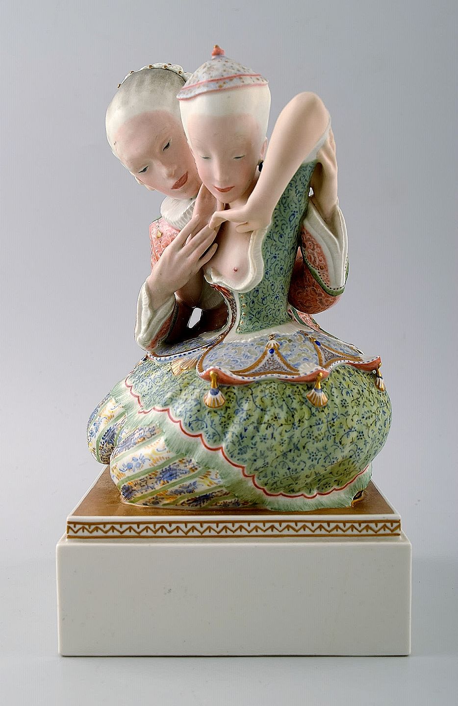 Royal Copenhagen. Gerhard Henning: "Eventyr I" figurgruppe af porcelæn, dekoreret i overglasurfarver og guld.