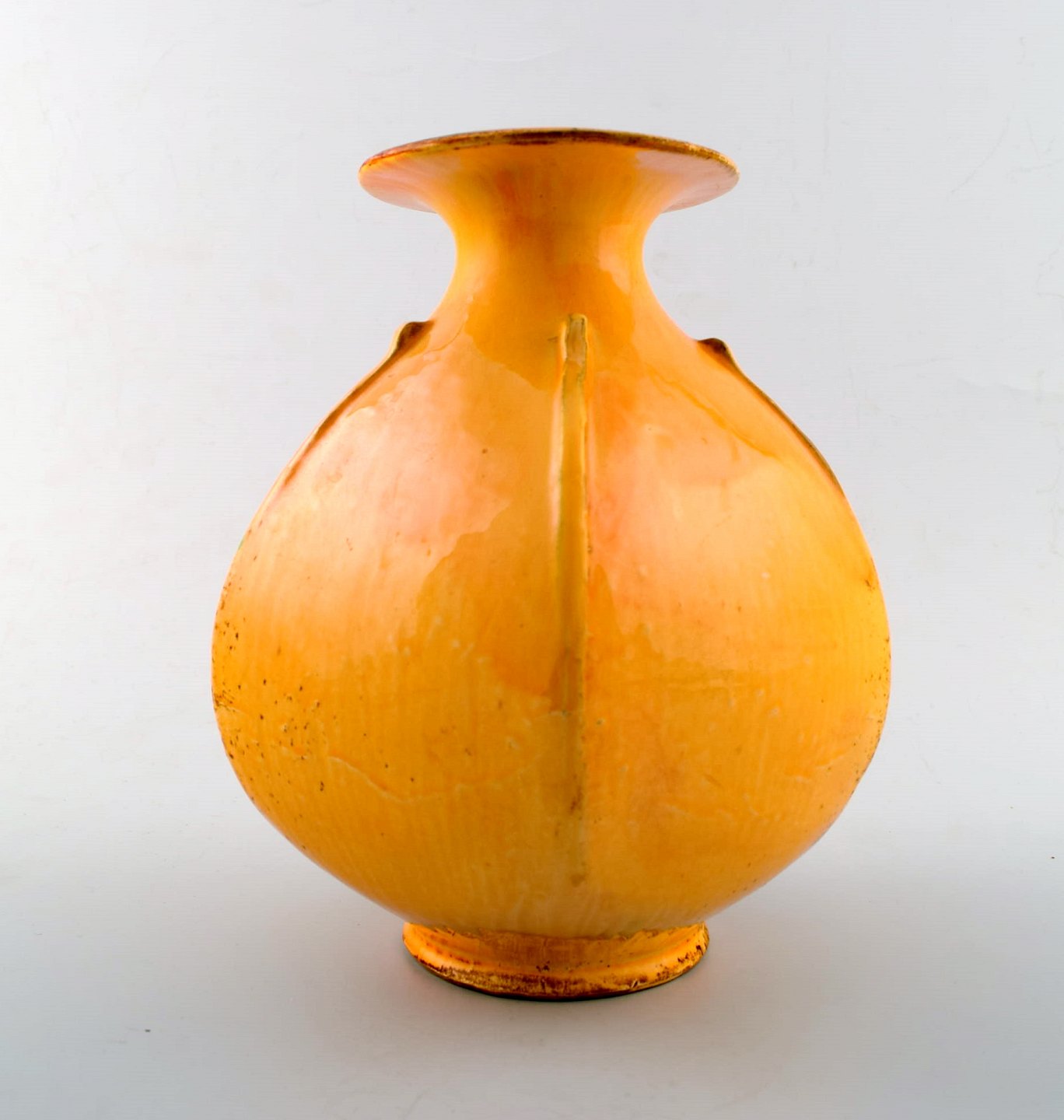 Kähler, Denmark, Svend Hammershoi, glazed stoneware vase. In perfect condition. Beautiful uranium yellow glaze. Marked. Measures 20 cm. x 16 cm.
