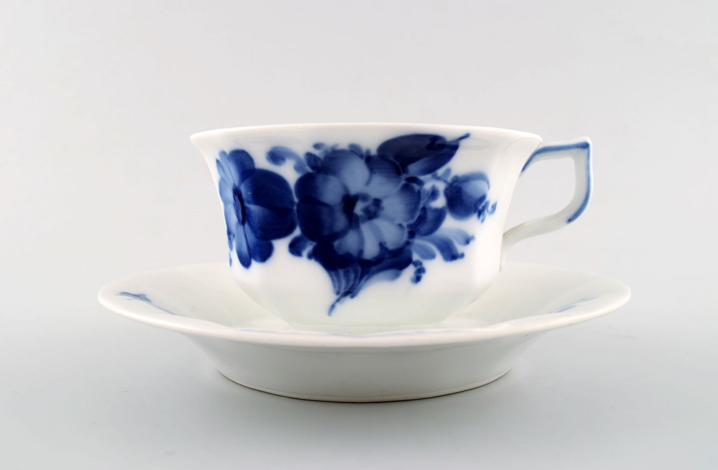 Stor blå blomst kantet kaffekop fra Royal Copenhagen.