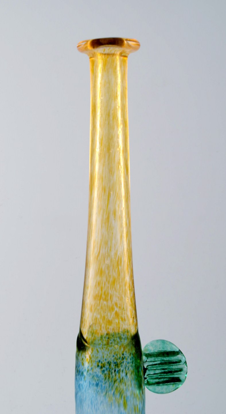 Kunstglasvase, designet af Bertil Vallien, fremstillet af Kosta Boda. I perfekt stand. Signeret. Højde: 34 cm. Bredde: 9 cm.