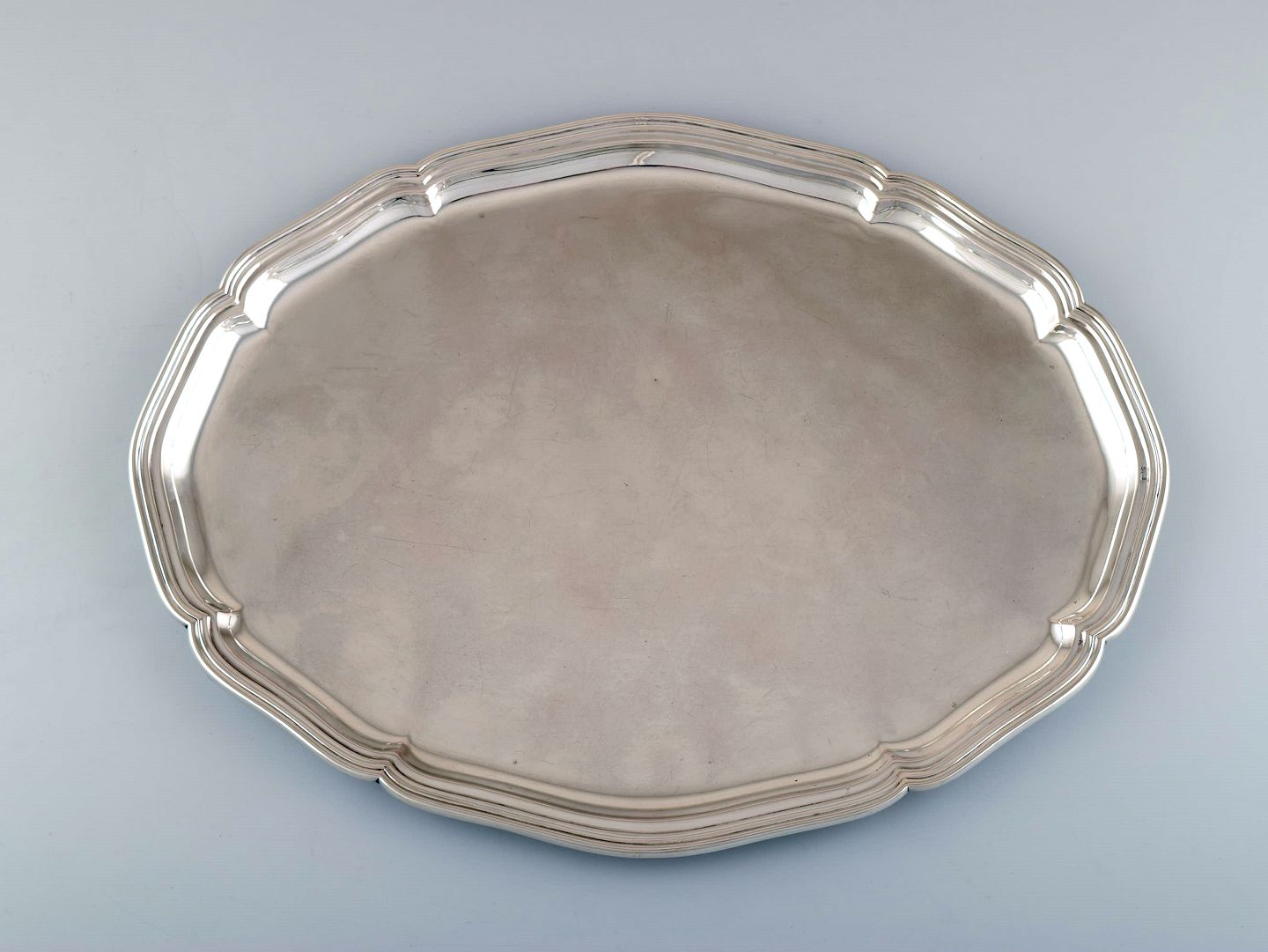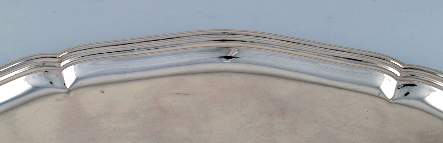Dansk tretårnet sølv, stor bakke, 1930/40´erne. I perfekt stand. Stemplet. Måler : 45 cm. x 35 cm. Vægt : 1100 gram.