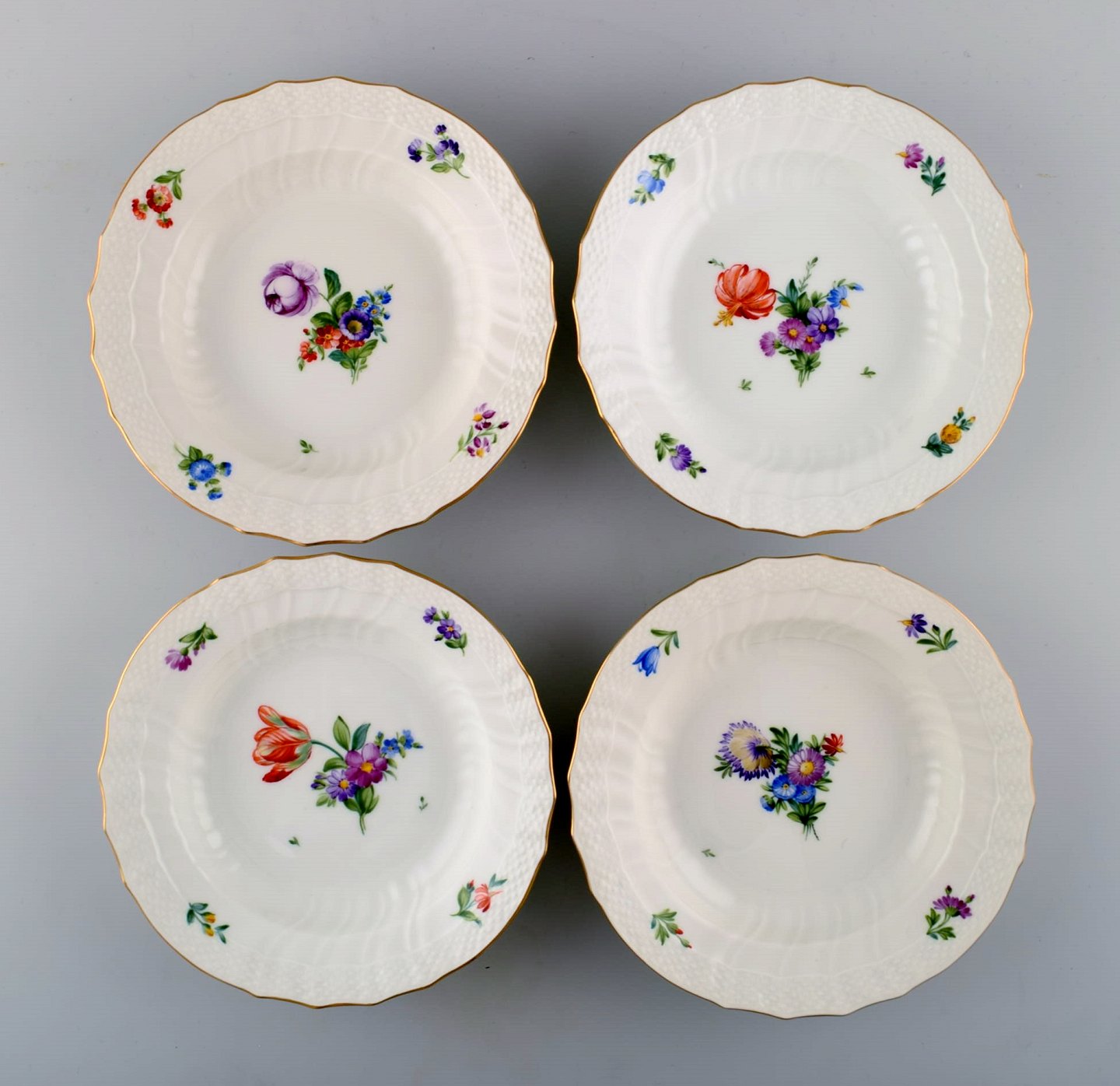 Royal Copenhagen Let Saksisk Blomst, 19 dybe tallerkener. Dekorationsnummer 493/1617. 2. sortering. Måler 20 cm. x 4 cm. dyb. Perfekt stand.