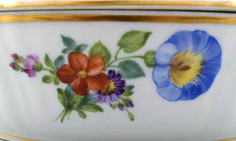 Royal Copenhagen Let Saksisk Blomst, lågterrin. Dekorationsnummer 493/1702. 2. sortering. Måler 27,5 cm. x 15,5 cm. Perfekt stand.