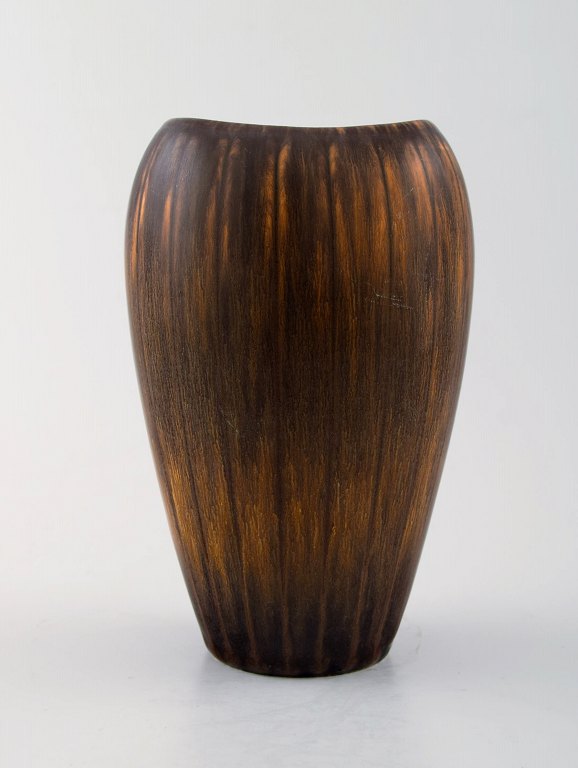 Rørstrand/Rörstrand stentøjsvase af Gunnar Nylund. 15 cm. høj. Diameter 10 cm. I perfekt stand. Glasur i brune nuancer. 2. sortering. Stemplet.