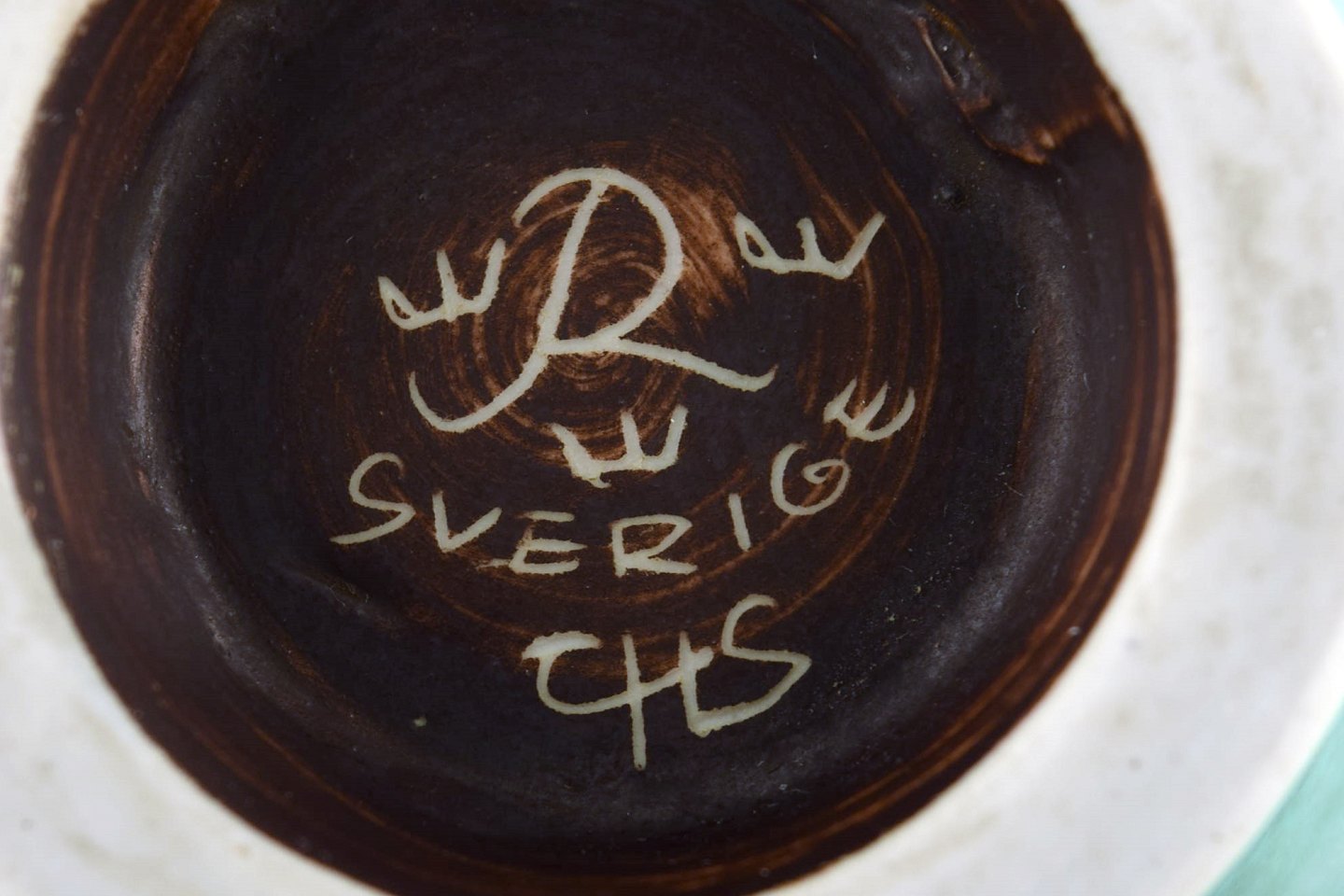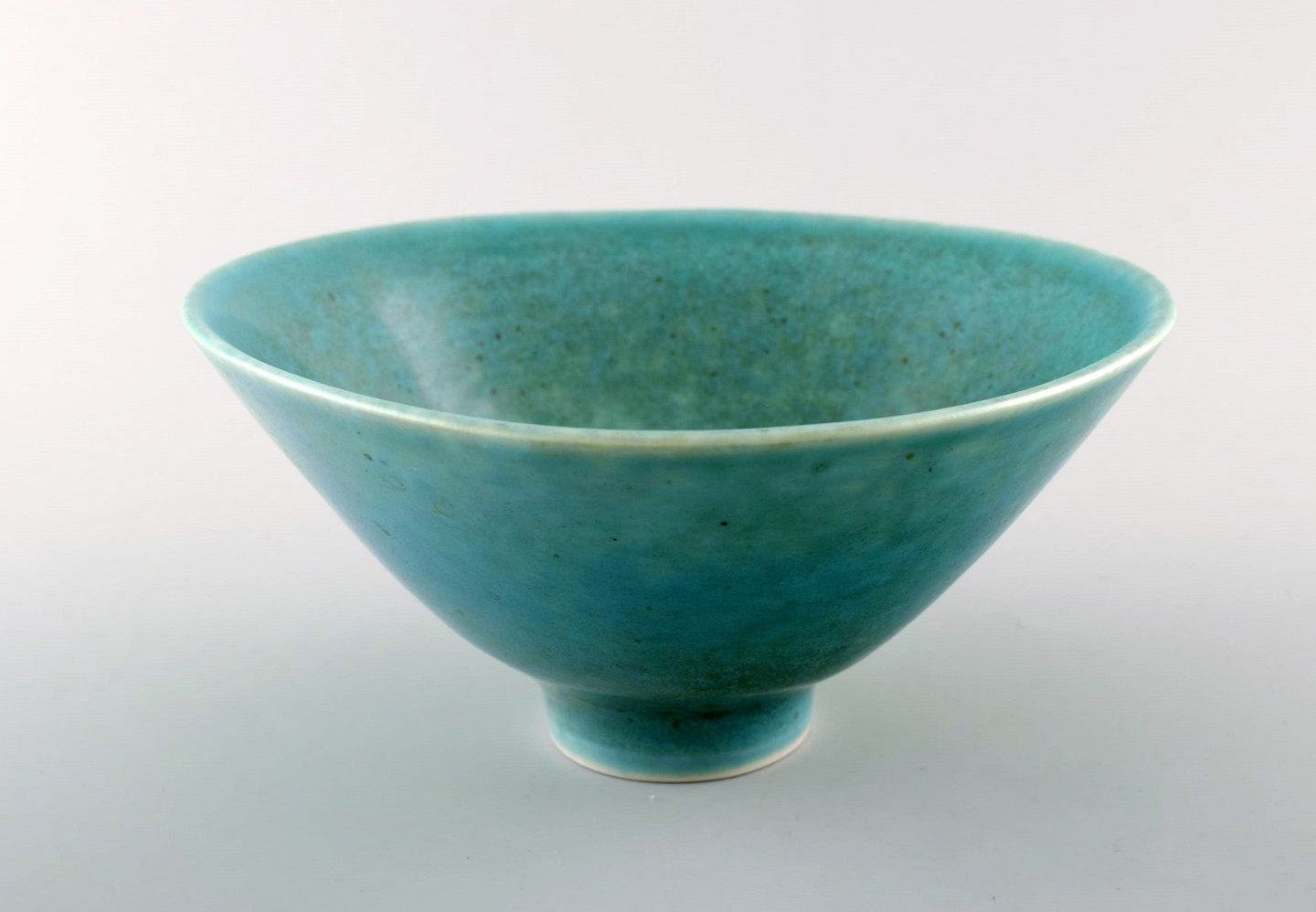 Carl Harry Stålhane, Rörstrand stentøjsskål. Smuk glasur i grønne og turkise nuancer. I perfekt stand, 1. sortering. Måler 19 x 9 cm.