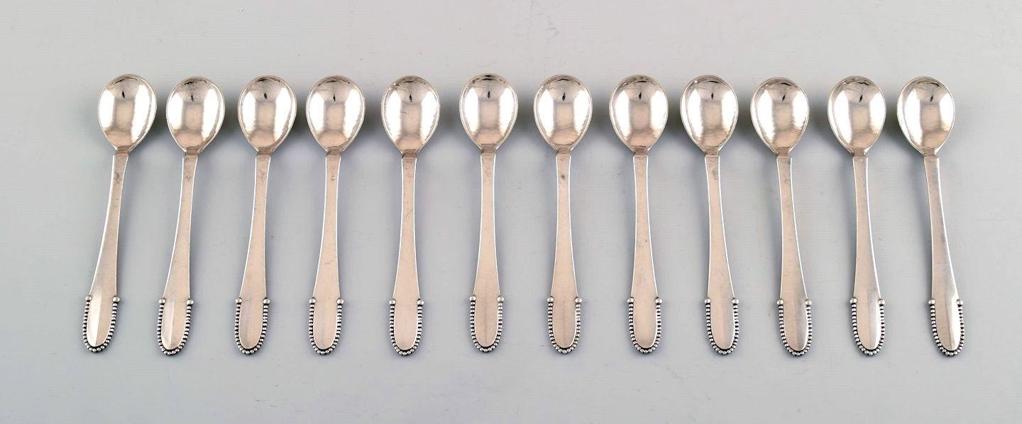 Georg Jensen Kugle 12 stk. theskeer i helsølv. Måler 11,5 cm. Stemplet. I perfekt stand.