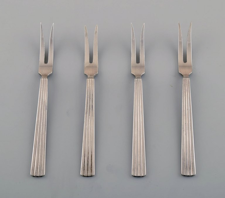Georg Jensen Sterlingsølv Bernadotte. Et sæt på 4 silde/pålægsgafler.