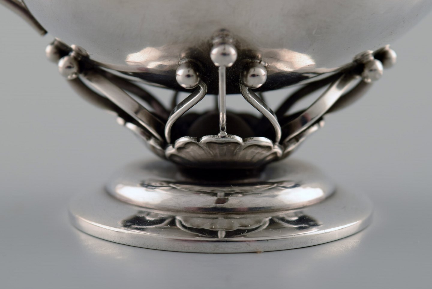 Georg Jensen: Kande af sterlingsølv, smedet med blomsterknopper og gennembrudt stamme med blade.