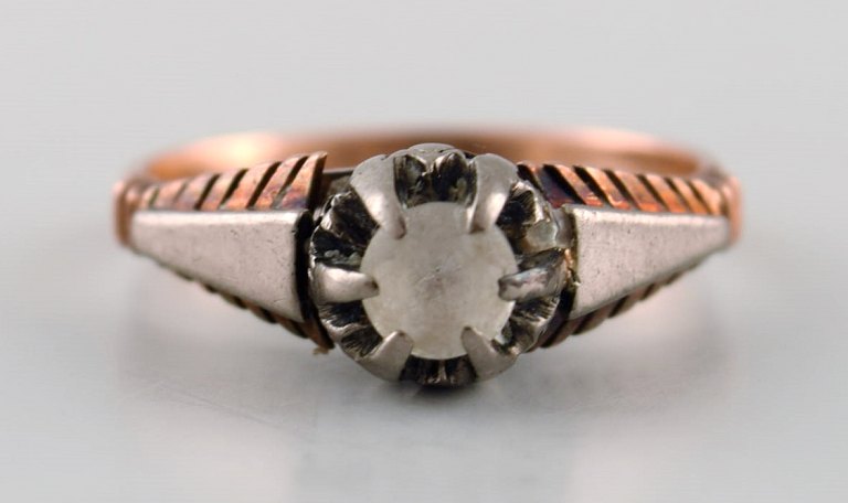 Vintage Art Deco Ring of 18 kt. gold, front with faceted clear stone.