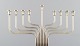 9-armet lysestage i nysølv på sokkel af palisander. Moderne stil. I flot stand. Måler: 28,5 x 28 cm.