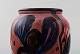 Fin Kähler, HAK, glaseret stentøjsvase. 1940´erne. Blå blomster på rosa bund.
