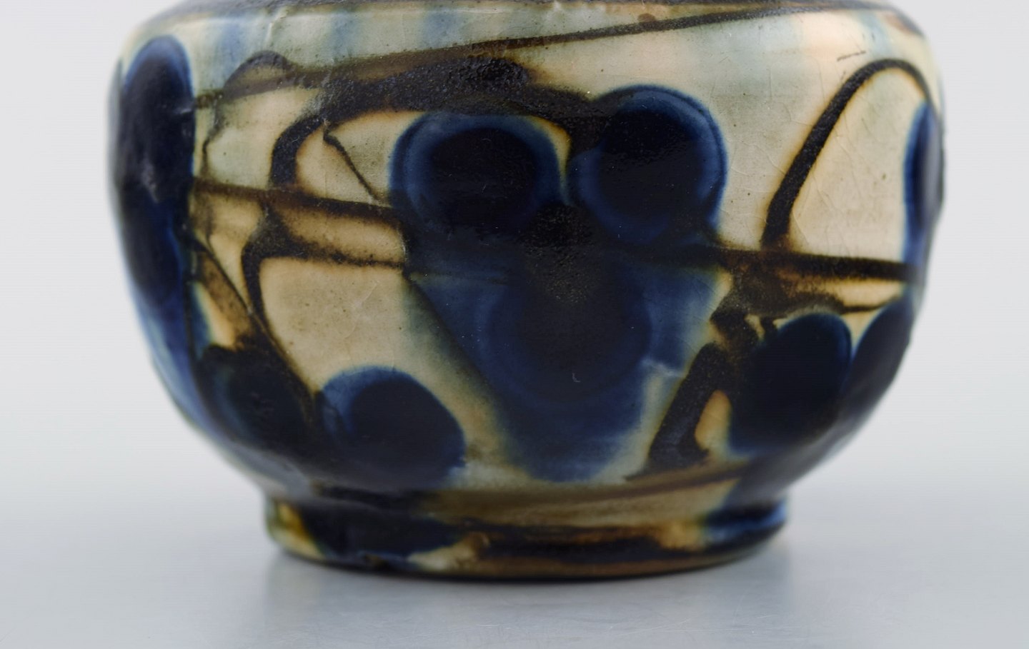 Fin Kähler, HAK, glaseret stentøjsvase. 1940´erne. "Gudhjem". Stemplet. Måler : 10 cm. x 8,5 cm. I perfekt stand.