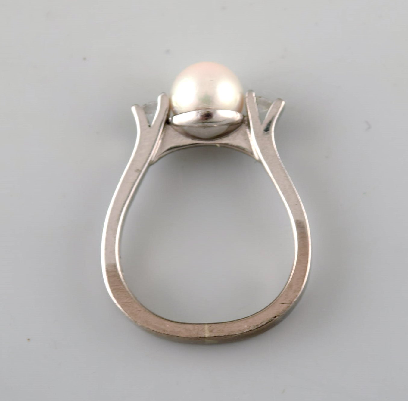 Ring af 18 kt. hvidguld prydet med en akoya saltvandskulturperle (Ø: 6,4 cm). Prydet med to brillantslebne diamanter (ca. 0.06 ct).