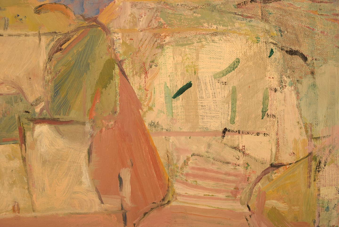 Ulla Malm, f. 1930. Finsk kunstner. Olie på lærred. Modernistisk bymotiv.