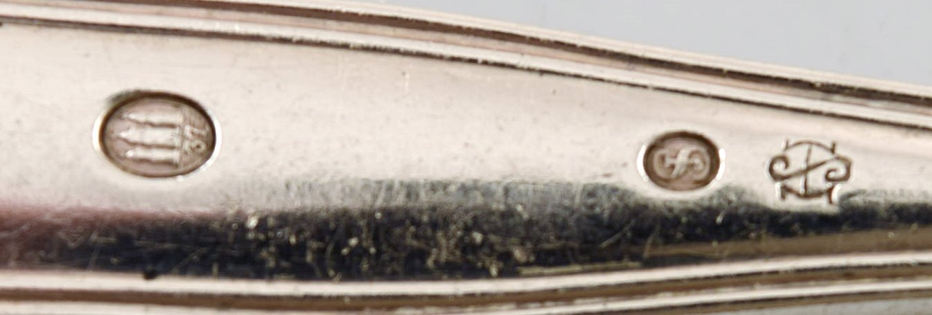 Horsens Sølv. Dobbeltriflet pålægsgaffel i tretårnet sølv. 1937. I flot stand. Stemplet. Måler: 15,5 cm. 2 stk på lager.