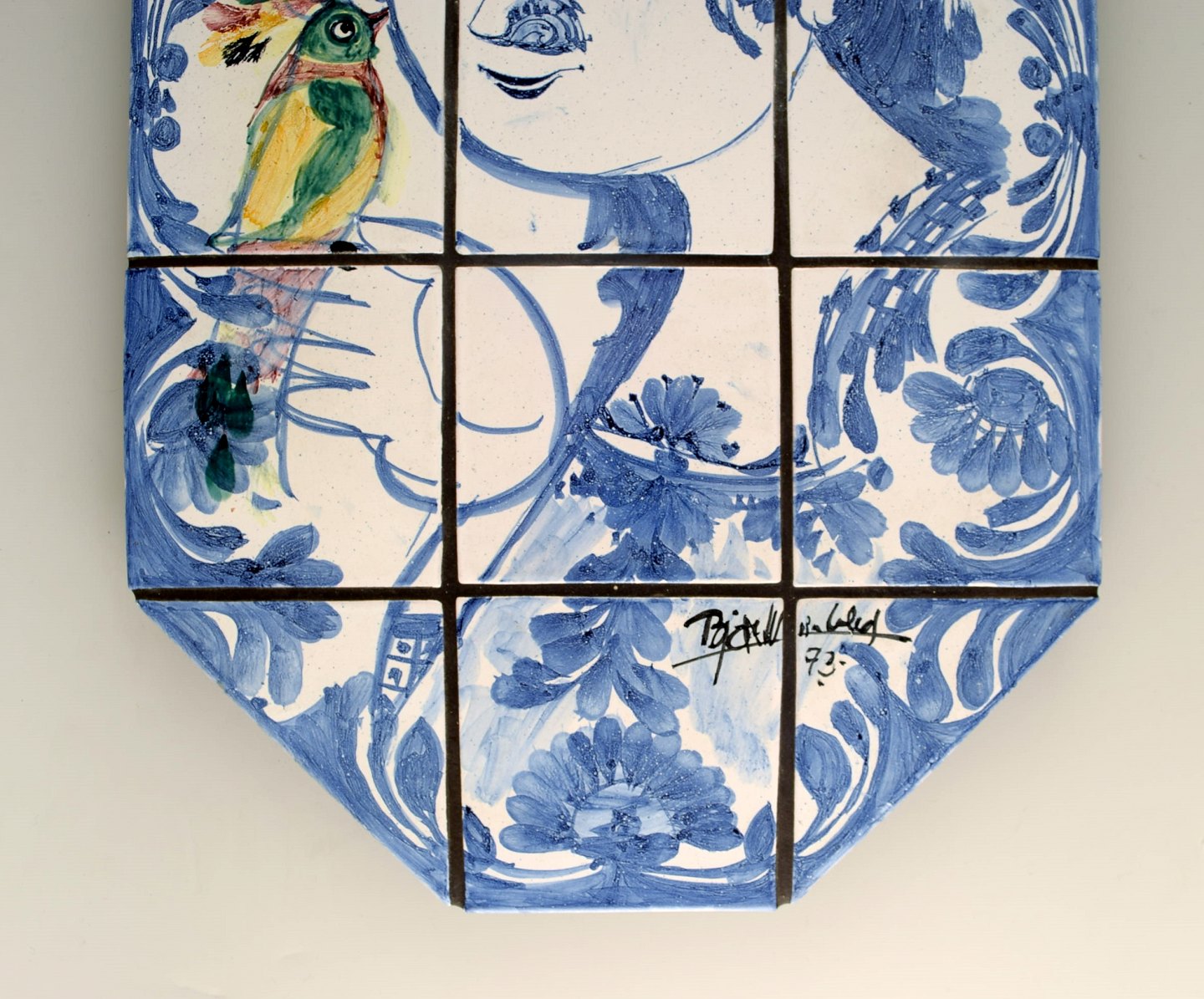 BJØRN WIINBLAD. The blue house. Very rare large wall plaque, decorated in blue with woman and bird. Dated 1973. Height: 61 cm. Width: 36.5 cm. In perfect condition. Signed and dated.