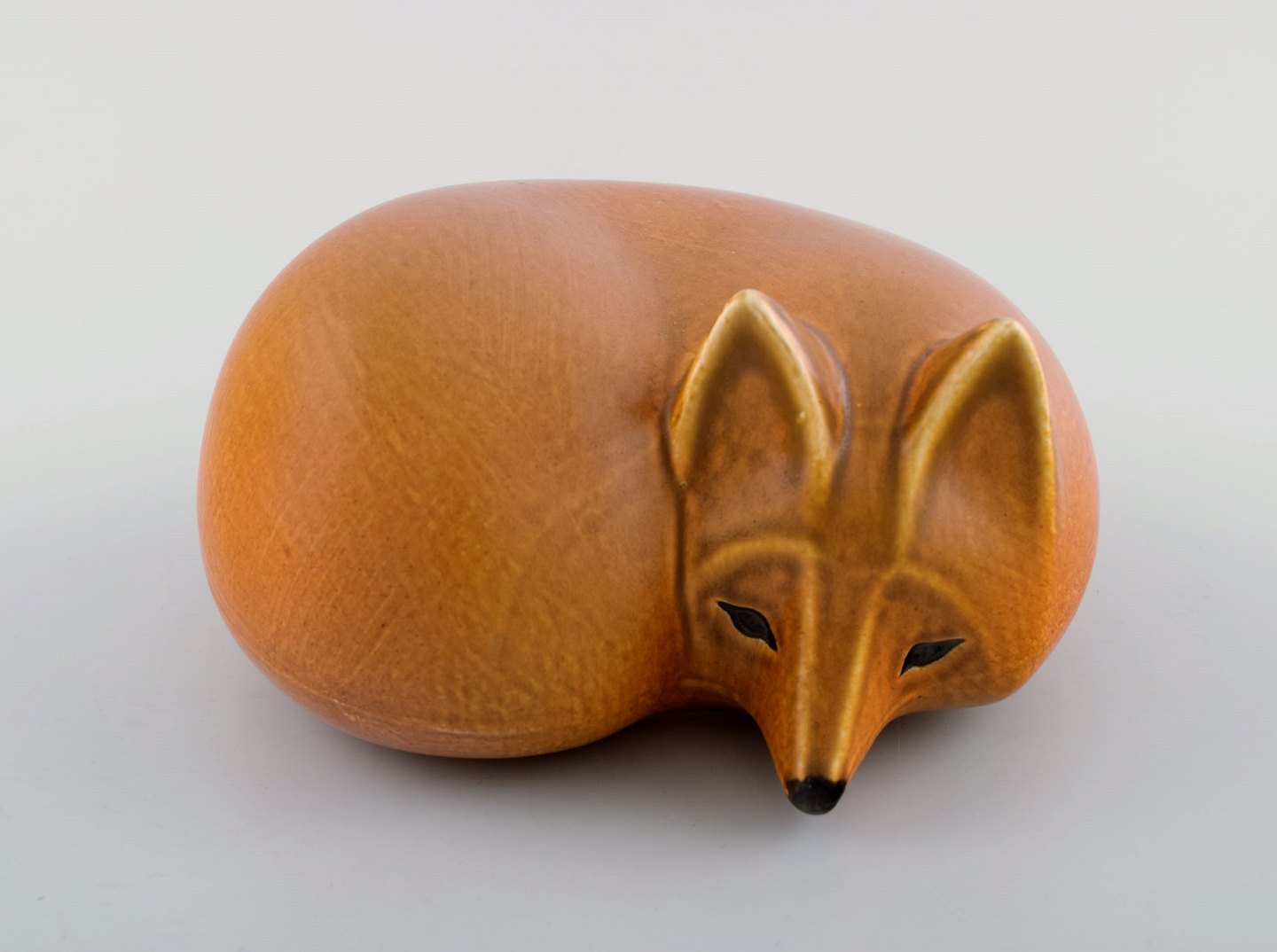 Lisa Larson for Gustavsberg 1977, stor rød ræv fra serien Skansen. Måler: 16 cm. x 8 cm. Stemplet. I perfekt stand.