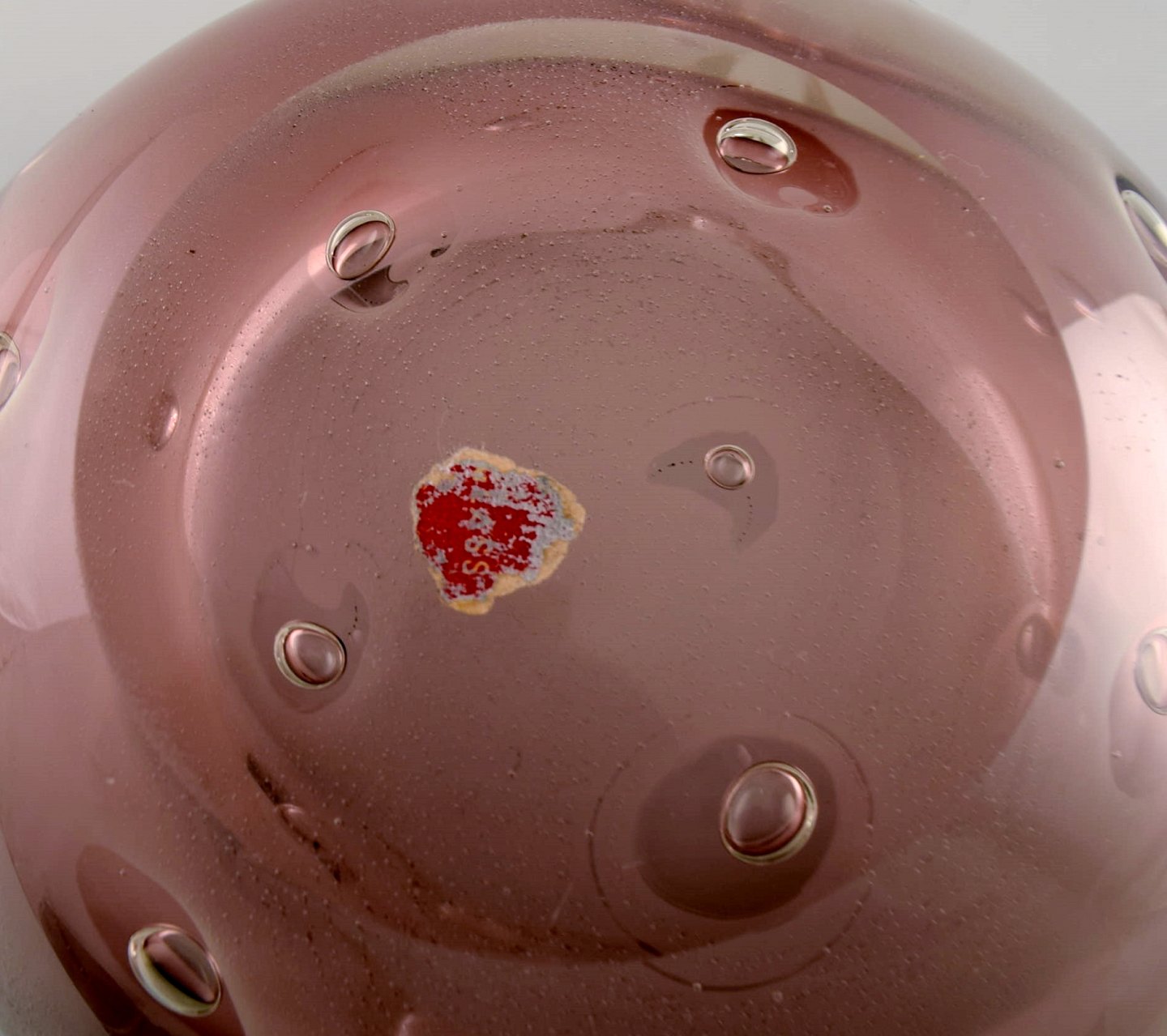 Murano, lyserød skål i mundblæst kunstglas, 1960´erne. Udført med bobler i glasmassen. I perfekt stand. Måler: 22 x 7,5 cm. Murano mærkat.