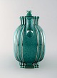 Wilhelm Kåge, Gustavsberg, stor Argenta art deco lågkrukke i keramik dekoreret med sølvindlæg.