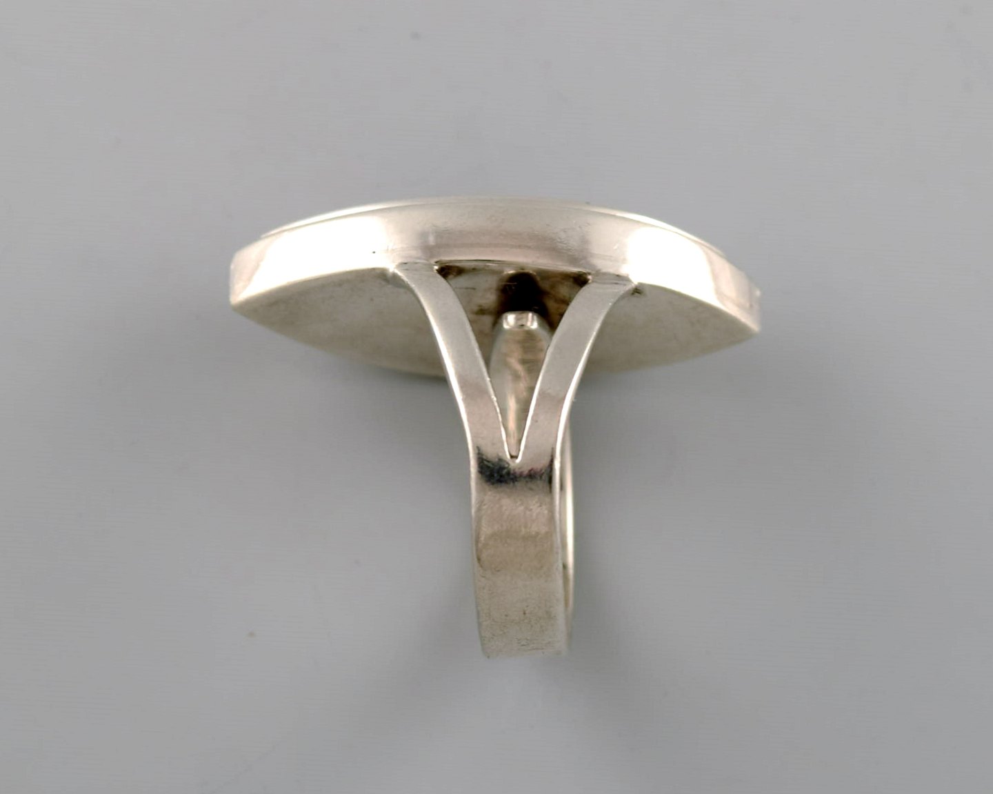 Scandinavian modernist ring in sterling silver and exotic wood. 1960's.