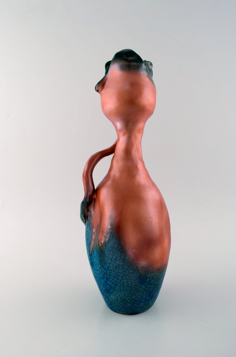 Alfred Renoleau Fransk art nouveau unika vase i glaseret keramik. Ca. 1890. Måler : 37 x 14 cm. I flot stand. Signeret i monogram.
