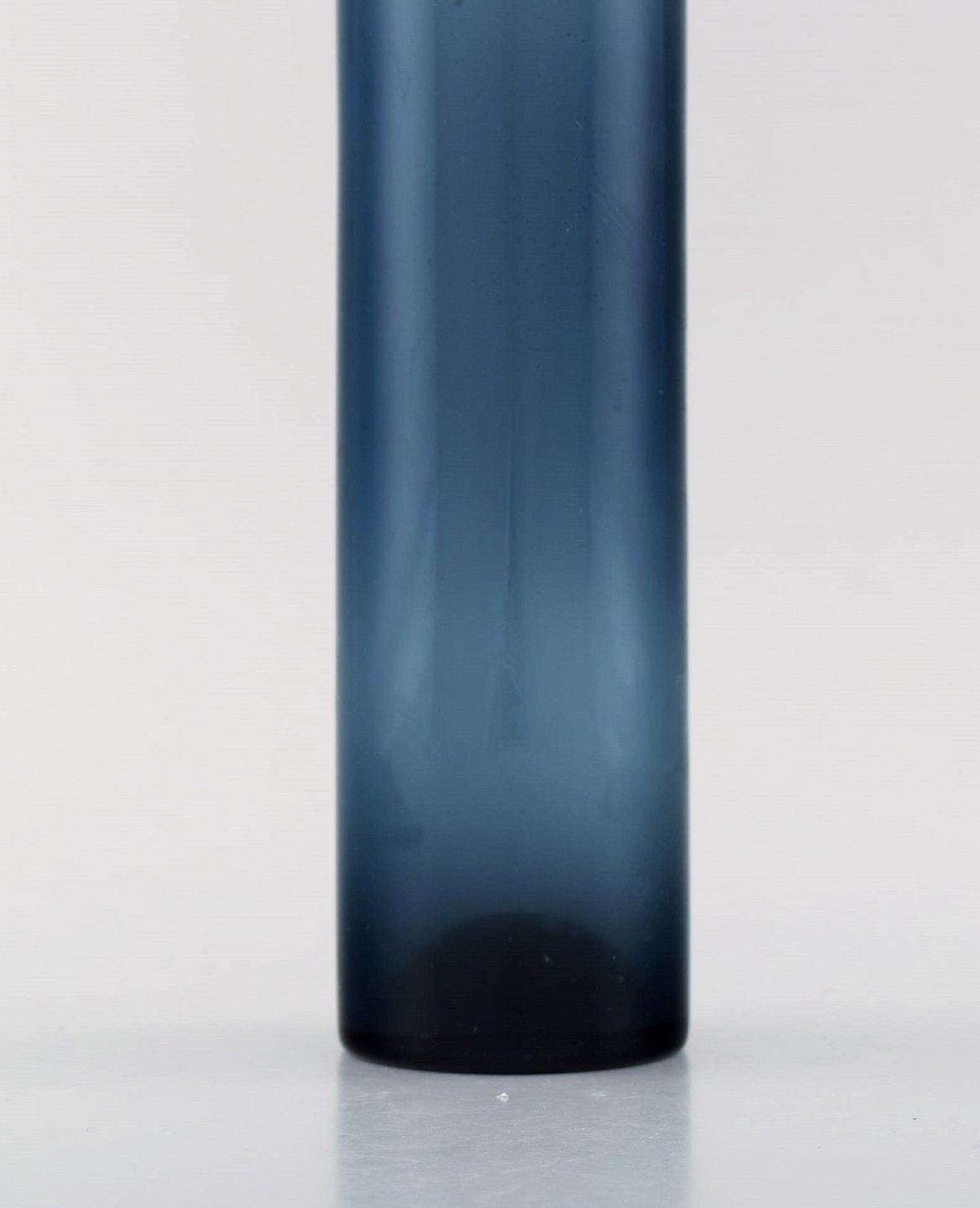 Nanny Still for Riihimäen Lasi, Finnish art glass decoration bottle vase. In perfect condition. Beatiful blue color. 1960 / 70's. Measures: 31,5 x 6,5 cm. Stamped.