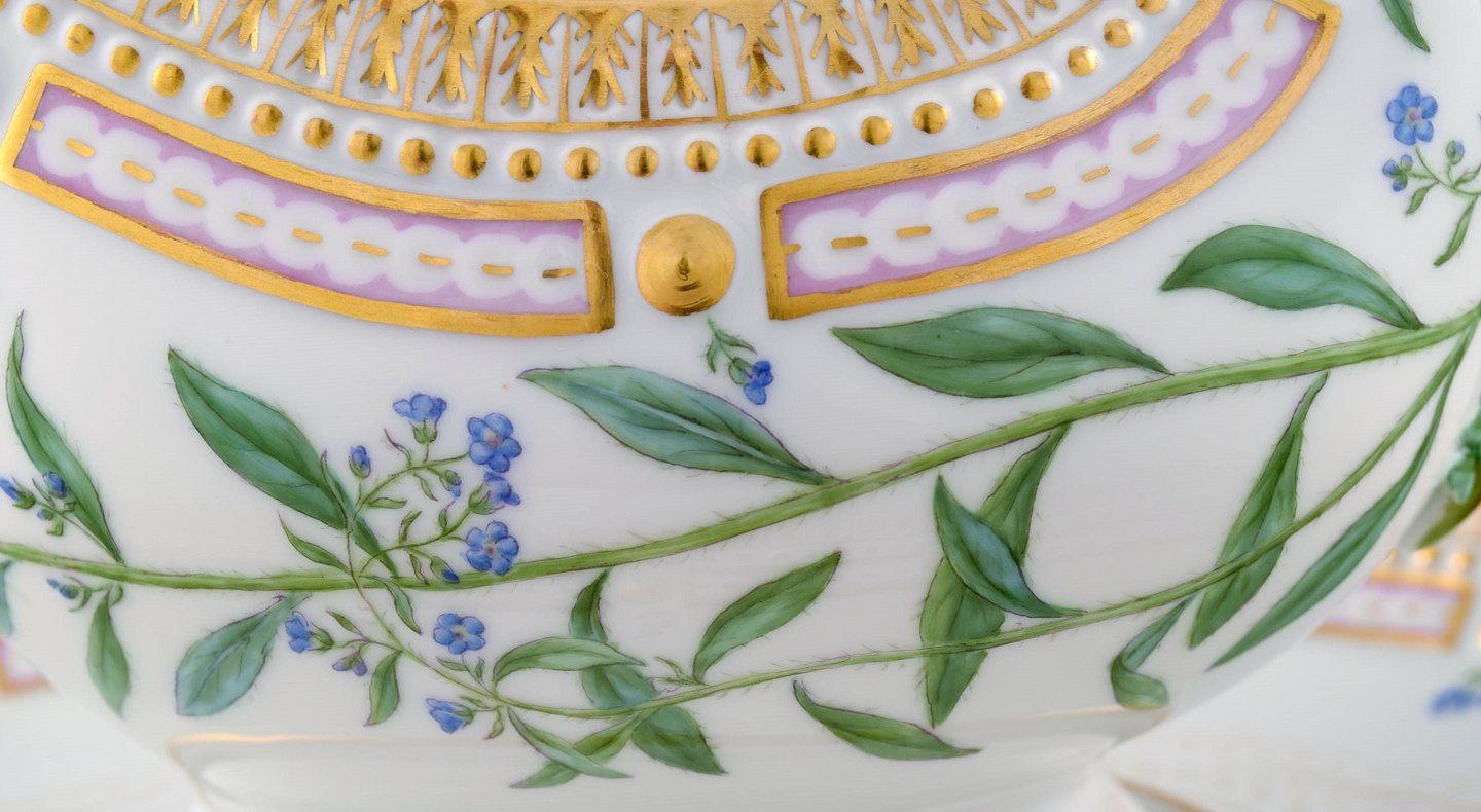 Royal Copenhagen Kongelig porcelæn Flora Danica saucekande/sovsekande, håndmalet med blomster. Måler: 24 x 18 x 15 cm I perfekt stand. 1. sortering. Modelnummer: 20/3556