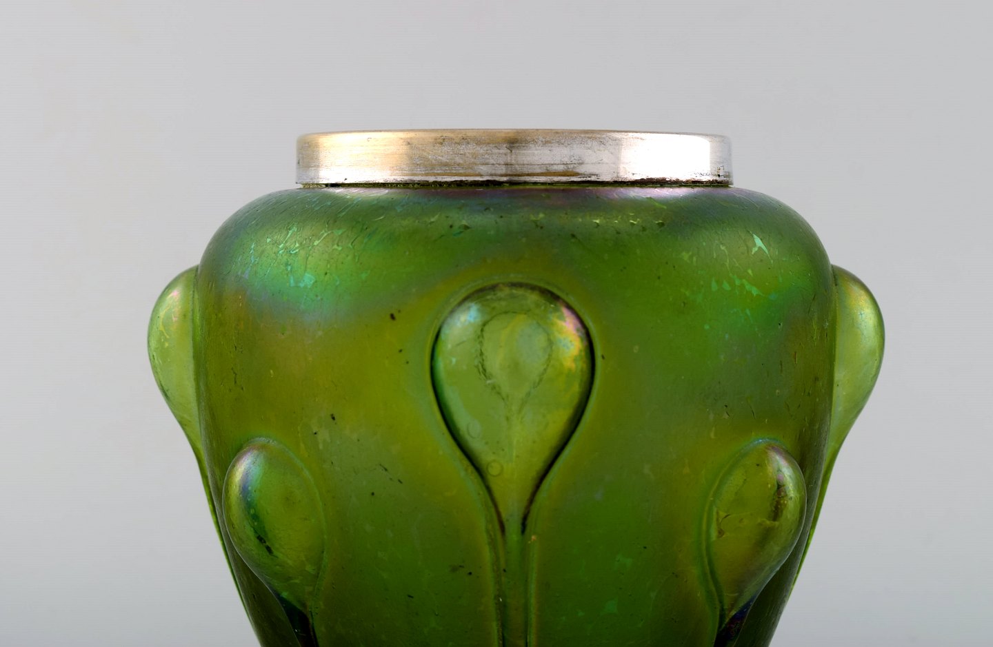 Lötz art nouveau vase in iridescent art glass with silver edge. Austria, early 20th century.