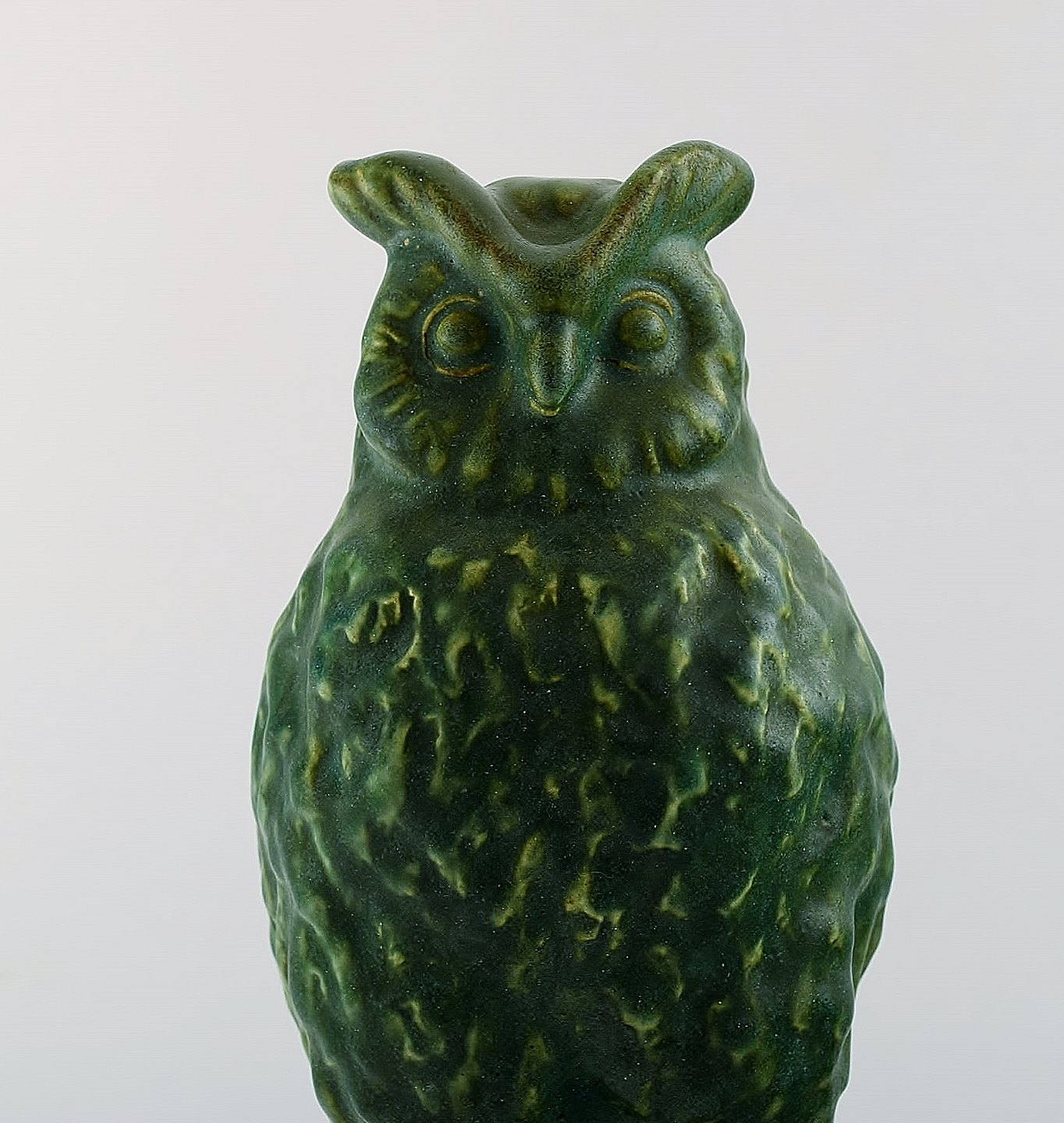 Michael Andersen. rare owl in glazed stoneware. Beautiful green glaze. 1950 / 60's. In very good condition. Stamped. Measures: 23 x 10 cm.