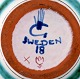 Stig Lindberg for Gustavsberg Studio Hand. onion shaped lidded jar in glazed ceramic / stoneware. Sprial, turquoise stripes. Ca. 1948.