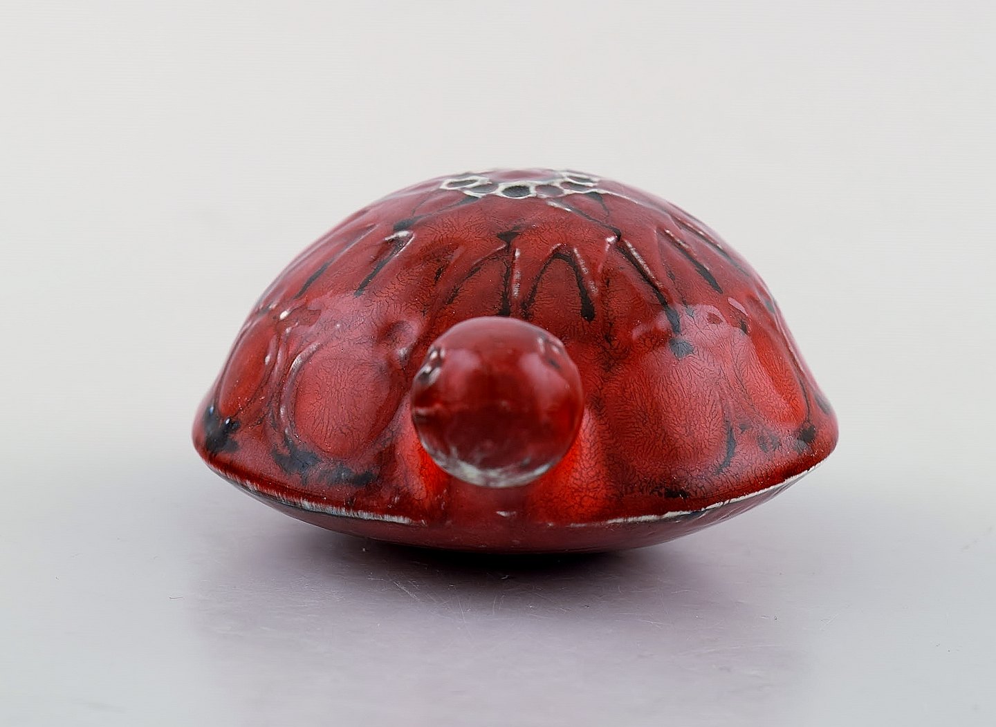 Lisa Larson, Gustavsberg. Skildpadde i stentøj. Glaseret og håndmalet. Måler: 9,5 x 5,5 cm. I perfekt stand.