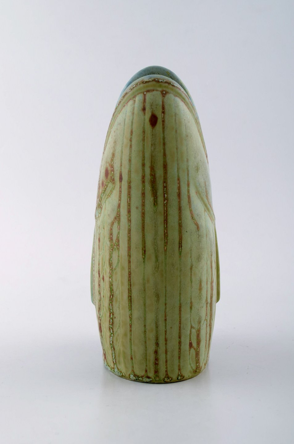 Rörstrand stentøjsfigur af Gunnar Nylund, sjælden fiskevase. Smuk glasur i blå grønne toner. I flot stand. 2. sortering. Måler 19 x 11,5 cm. Stemplet.