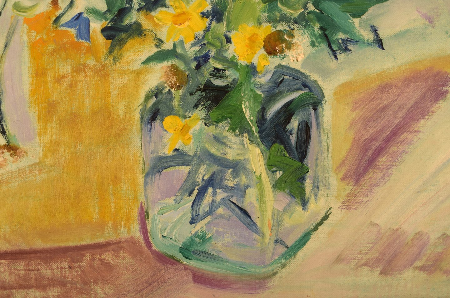 Albert Naur ( f.1889, d. 1973) dansk maler. Opstilling med blomster i vase. Olie på lærred, dateret 1956.