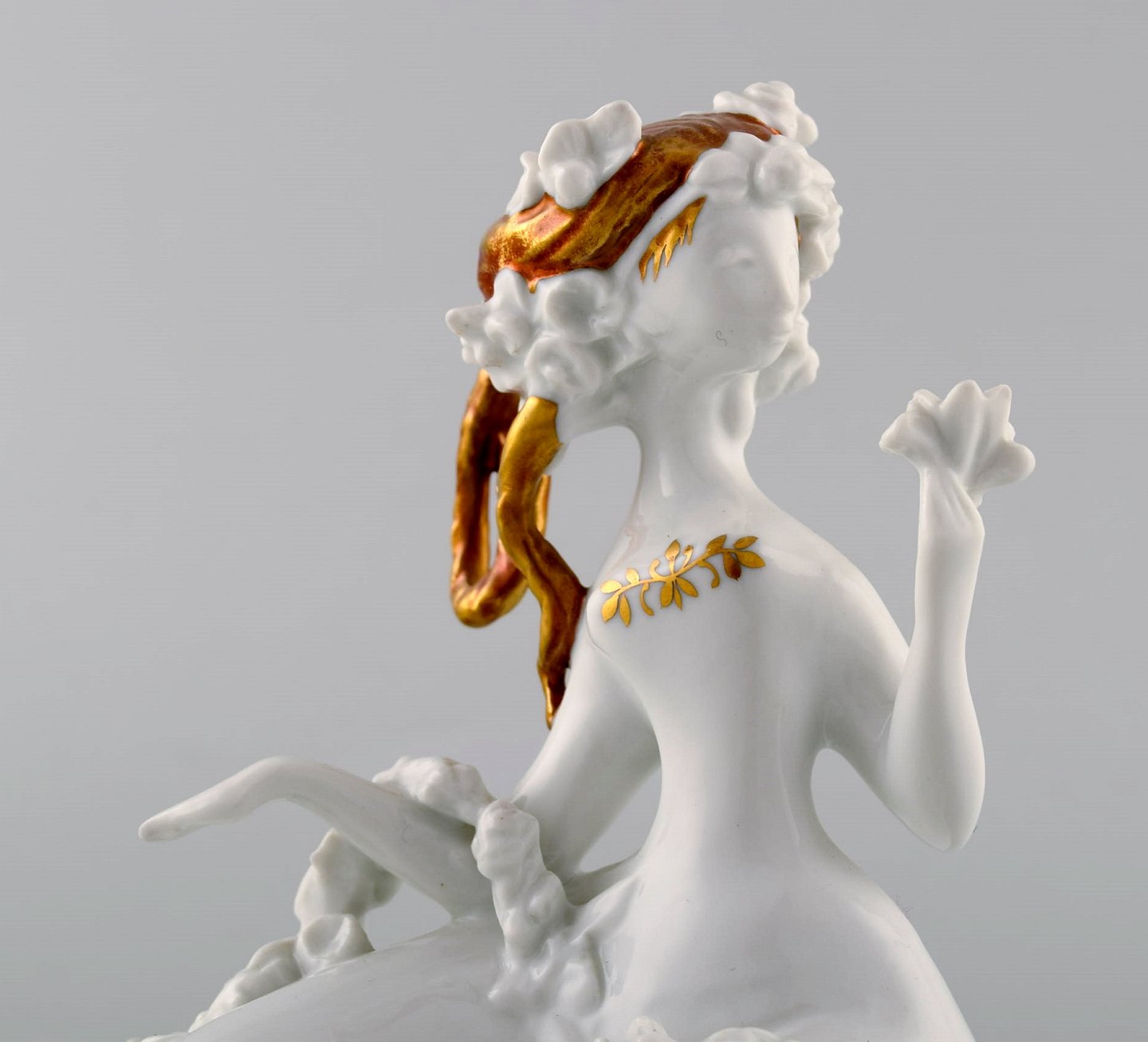 Bjørn Wiinblad for Rosenthal. Rare porcelain / blanc de chine figure with gold decoration. Girl with flowers. 1980's.