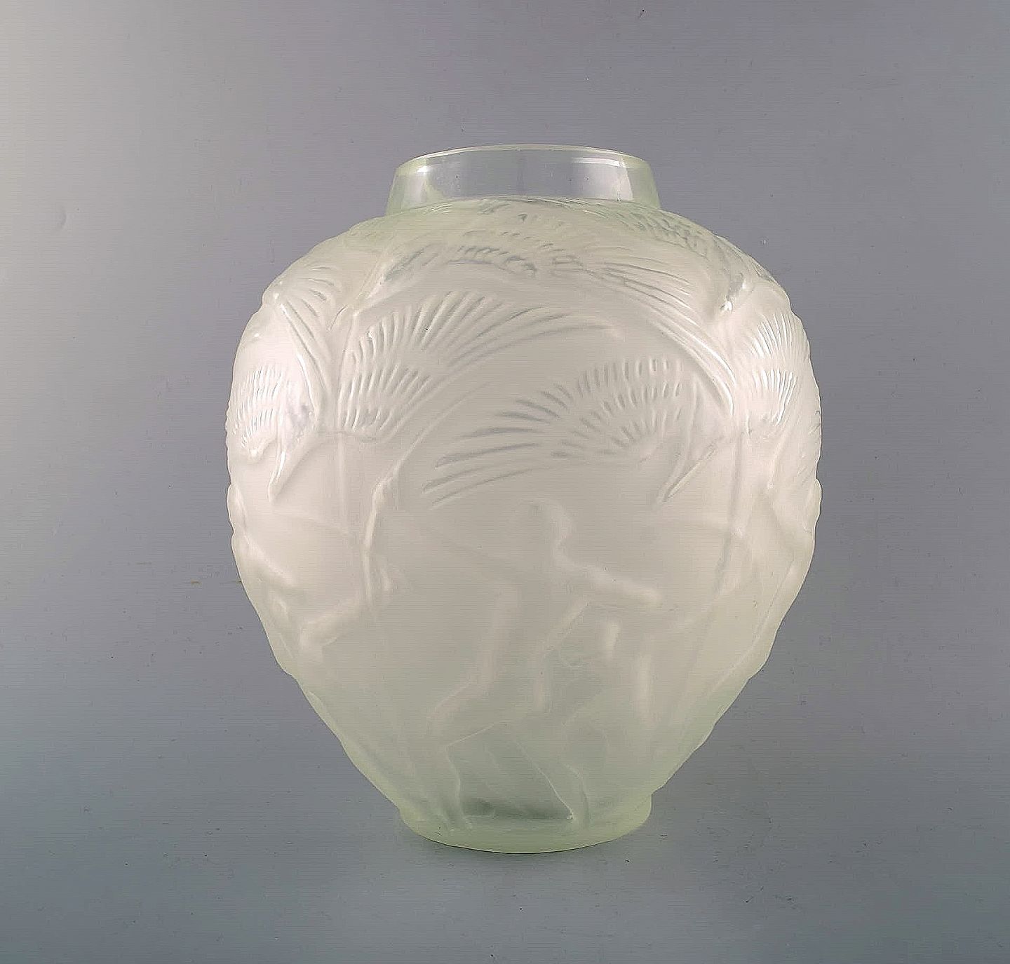 Stor René Lalique art deco vase i kunstglas med junglemotiv. 1930'erne.
