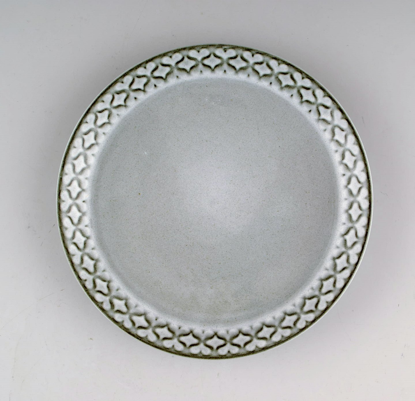 Jens Harald Quistgaard for Bing & Grøndahl. Teservice i glaseret stentøj. Komplet til otte personer med tilhørende tallerkener, flødekande, sukkerskål, fade og smørbeholder.