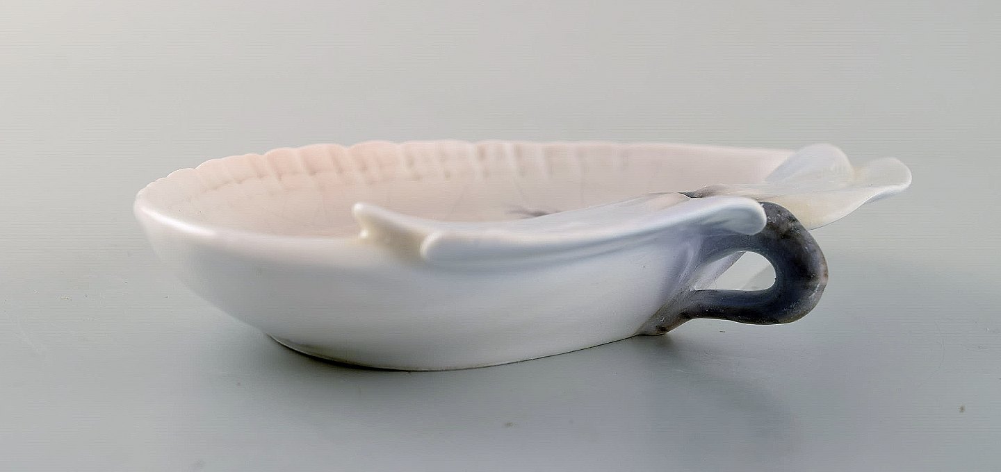 Tidlig Royal Copenhagen art nouveau skål. Dekoreret med insekt og edderkop. Ca. 1900. I flot stand. Stemplet. Måler: 17 x 3 cm.